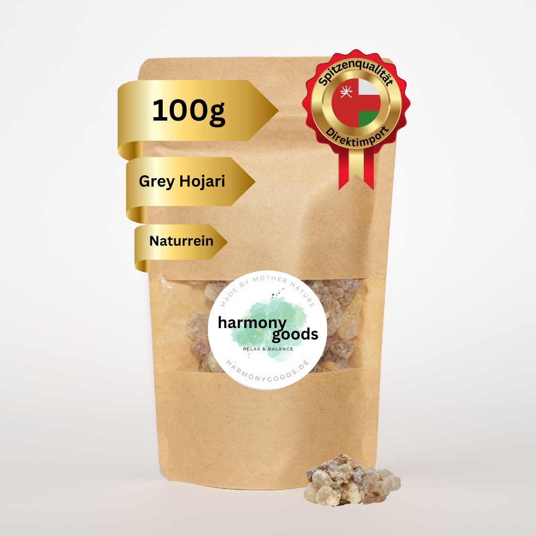 Entdecke unseren Grey Hojari Weihrauch (Silver Aura), bekannt für seinen zitrusartigen Duft und die feine Körnung. Dieser hochwertige Weihrauch ist ideal für Deinen HarmonyGoods Starterkit Brenner oder klassische Stövchen oder Kohlebrenner. Sein dezentes, aber intensives Aroma erfüllt jeden Raum mit einer beruhigenden und inspirierenden Atmosphäre – perfekt für Meditation, Aromatherapie oder einfach, um entspannte Vibes in Dein Zuhause zu bringen.