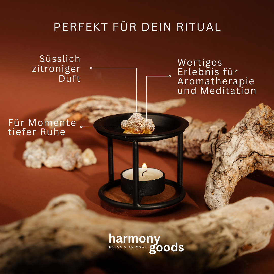 Im Weihrauchbrenner: Die feine Körnung sorgt für eine gleichmäßige Anwendung, ideal für kleine und mittelgroße Brenner. Perfekt für gemütliche Momente oder spirituelle Rituale.
